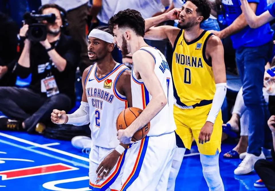 NBA总决赛天王山,雷霆120-109击溃步行者,大比分来到3-2。首节比赛,哈腾的内线强攻打进第一球,内姆布哈德的旋风冲刺上篮也为步行者开张,西卡中距离干拔命中,杰威长驱直入挑落两分,很快,依然是雷霆开局先发制人,利用极强的防守侵略性取得领先优势,杰威和亚历山大连续快攻反击得手,带队取得两位数优势,第一节结束,雷霆32-22领先步行者10分。次节比赛,西卡后仰干拔稳稳得手,威金斯外线火力全开,连进两球,亚历山大的标志性中投镖镖必中,切特也在禁区内高高跃起补扣得手,雷霆继续占据主动权,最多把领先优势扩大到18分,半场战罢,雷霆59-43领先步行者16分。
